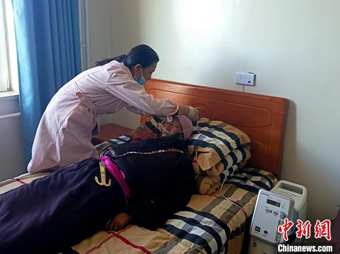 圖為敬老院工作人員給老人用上制氧機(jī)。青海省民政廳供圖