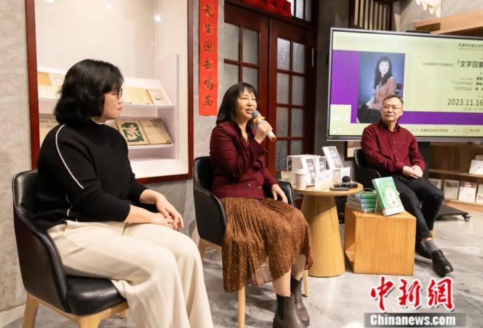 曾曉文(中)參加由天津市比較文學學會主辦的“文字回家”主題討論會。王在御 攝