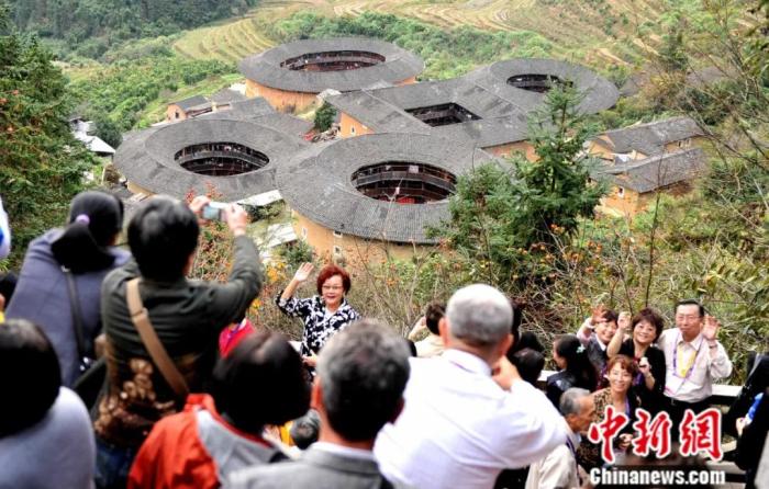 2011年,來自世界五大洲三十多個國家和地區(qū)的海內外華人作家、學者,參加完在廣州舉辦的世界華文文學研討會后,來到福建漳州,參觀南靖土樓群。王東明 攝