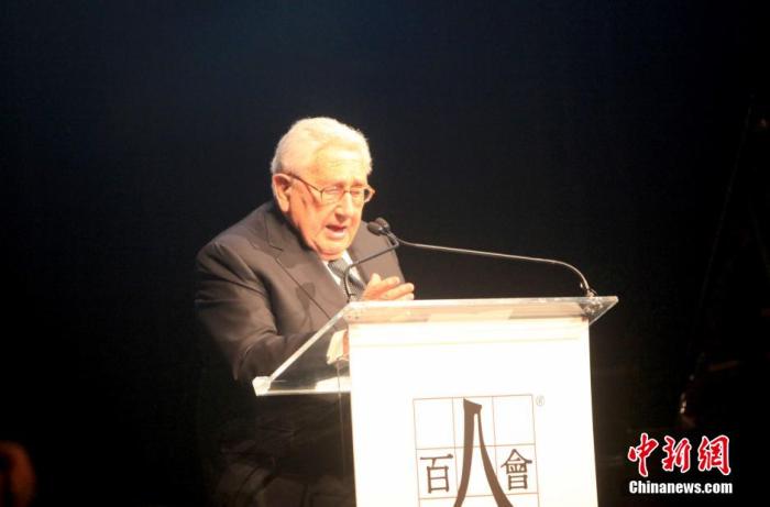 資料圖:美國(guó)前國(guó)務(wù)卿基辛格出席在紐約舉行的美國(guó)百人會(huì)成立25周年頒獎(jiǎng)晚宴并發(fā)表演講。中新社發(fā) 阮煜琳 攝