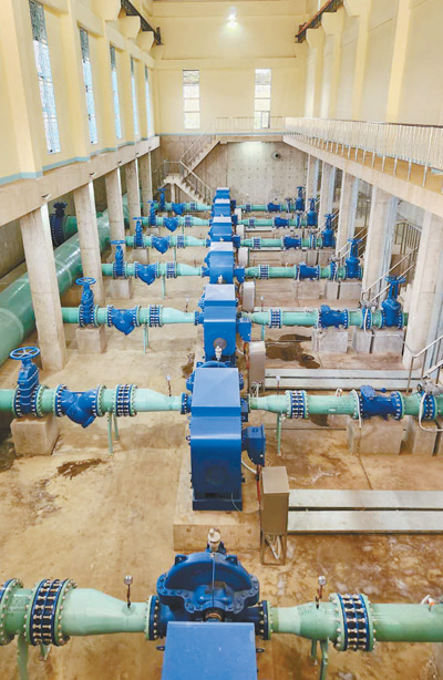 坦桑尼亞阿魯沙新供水系統(tǒng)項目由中國電建市政建設集團有限公司承建。項目設計日供水量為12.5萬立方米/天,可滿足阿魯沙40萬人的用水需求。項目建成后將極大地改善阿魯沙市區(qū)的供水短缺問題,對推動當地經濟發(fā)展、增進民生福祉具有重要作用。圖為阿魯沙新供水系統(tǒng)項目5號提升泵站內景。