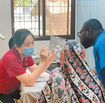 自1964年起,中國一直向坦桑尼亞桑給巴爾派遣醫(yī)療隊。中國醫(yī)療隊為當地人民提供醫(yī)療服務,培訓當地醫(yī)務人員,推動了桑給巴爾衛(wèi)生事業(yè)的發(fā)展。圖為中國(江蘇)第三十二期援桑給巴爾醫(yī)療隊隊員為當地患者檢查。