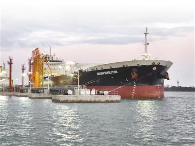 肯尼亞蒙巴薩港新建KOT油碼頭是一座具有國際領先水平的現代化油氣裝卸碼頭,由中國交通建設集團有限公司承建。該碼頭能夠同時實現原油、重油、汽油、柴油、煤油和液化石油氣的進出口轉運功能,投入使用后大幅提升了蒙巴薩港油氣中轉能力,為肯尼亞經濟發(fā)展增添新動力。圖為??吭谠摯a頭的一艘油輪正在進行卸油作業(yè)。