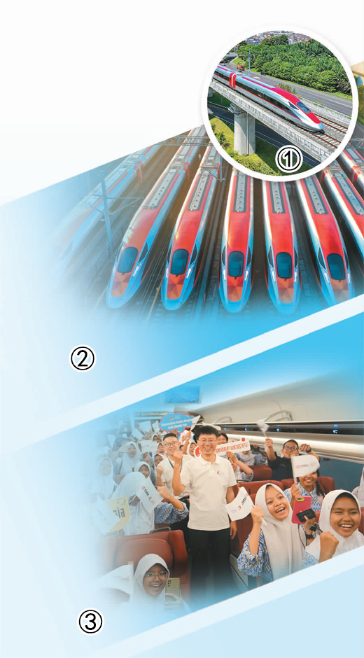 圖③:印尼中學(xué)生體驗雅萬高鐵列車。