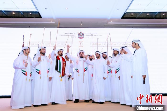 圖為阿聯(lián)酋國慶慶?;顒?dòng)中的傳統(tǒng)舞蹈表演。 (阿聯(lián)酋駐華使館供圖)