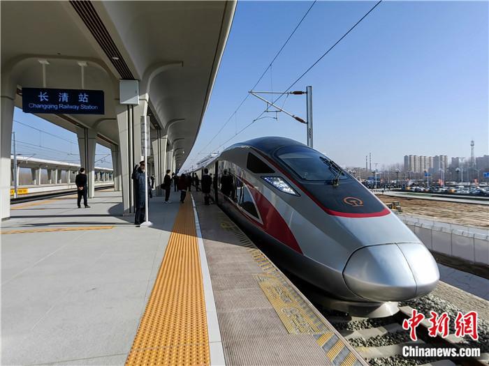 12月8日,濟(jì)鄭高鐵全線通車。圖為在濟(jì)南長清站始發(fā)前往鄭州的復(fù)興號(hào)列車。沙見龍 攝