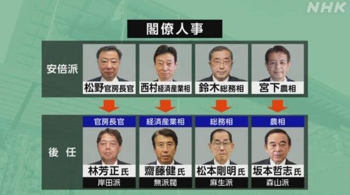 據(jù)報道,岸田將會把官房長官、經(jīng)產相、總務相和農相四個重要職位換人,此前任外相的林芳正將接替松野博一擔任官房長官,經(jīng)產相、總務相和農相將分別由齋藤健、松本剛明和坂本哲志擔任。四人均不屬于安倍派成員。