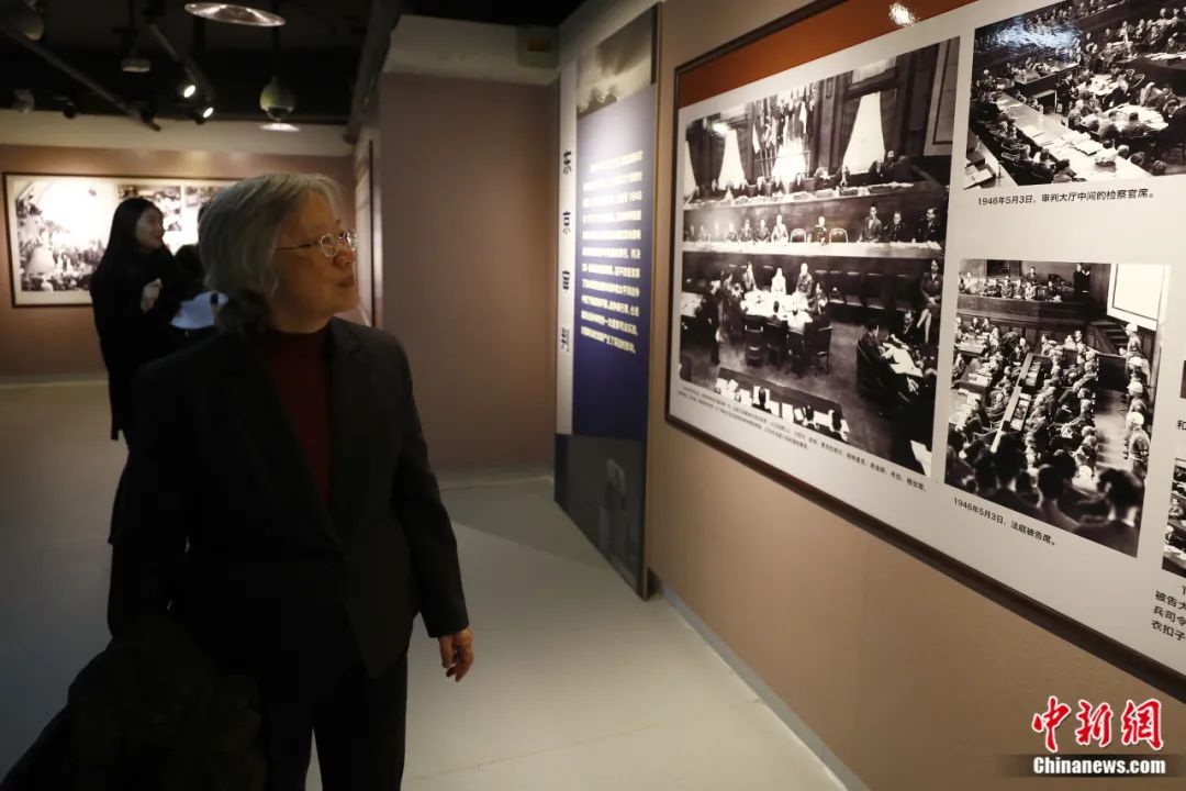 2019年12月13日,《正義的審判——紀(jì)念東京審判宣判71周年專題展》在中國(guó)人民抗日戰(zhàn)爭(zhēng)紀(jì)念館開(kāi)幕,270余幅珍貴歷史照片再現(xiàn)“東京審判”。圖為遠(yuǎn)東國(guó)際軍事法庭中國(guó)法官梅汝璈之女梅小侃參觀專題展。富田 攝