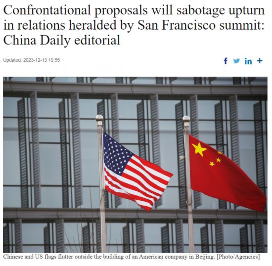 11月,舊金山會晤達成共識,中美雙方應(yīng)加強溝通,妥善管控分歧,推進對話合作。然而,委員會的提議卻與舊金山會晤共識背道而馳,充滿對抗性。提議或?qū)?dǎo)致美國國會于明年出現(xiàn)更多反華立法,這無疑將給雙方關(guān)系的改善蒙上陰影。