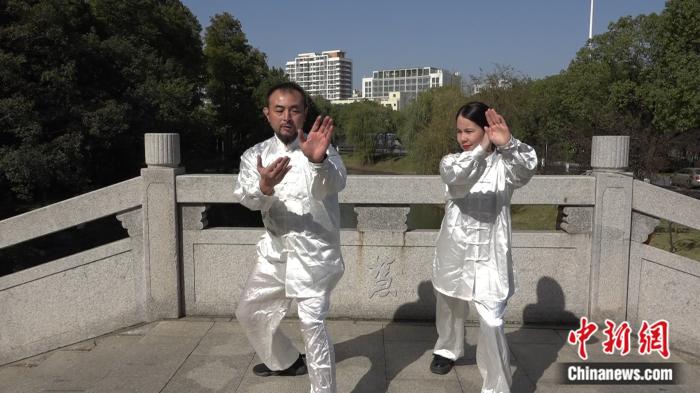 美莎和常州大學(xué)體育學(xué)院碩士生導(dǎo)師 ,國家武術(shù)教練員一級裁判員許曉陽學(xué)習(xí)太極。葛勇 攝