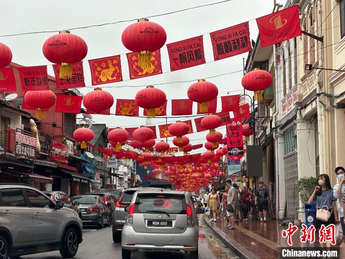 每逢中國農(nóng)歷新年,馬六甲雞場街都布置得極具年節(jié)喜慶氣氛。圖片攝于2023年1月24日?! ≈行律缬浾?陳悅 攝
