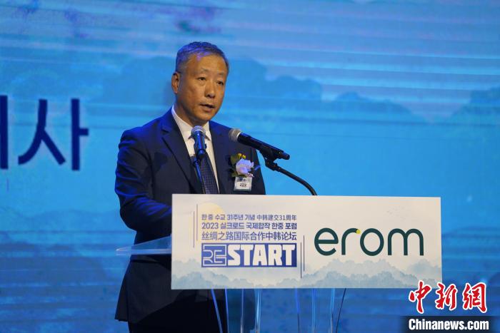圖為韓中絲綢之路國際交流協(xié)會(huì)會(huì)長李先虎致辭。中新社記者 劉旭 攝