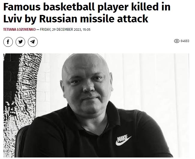 據(jù)報道,當天,尼庫林在社交媒體上寫道,“今天,在俄羅斯對我們城市發(fā)動的導彈襲擊中,烏克蘭籃球運動員、教練、國際級運動健將維克多·科布齊斯蒂死亡”。