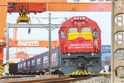 目前,中歐班列(成渝)聯(lián)接境外超100個城市,穩(wěn)定運(yùn)行近50條成熟線路。今年1月至11月,中歐班列(成渝)累計開行超5000列,占全國中歐班列累計開行量近三成。從2013年首趟“蓉歐快鐵”開行至2023年12月,從成都國際鐵路港開出的國際班列超2.5萬列,運(yùn)輸貨物品類從最初的二十幾個躍升至超過1萬個,境內(nèi)外130余個城市由此拉近了空間距離,實現(xiàn)了更為緊密的互聯(lián)互通。