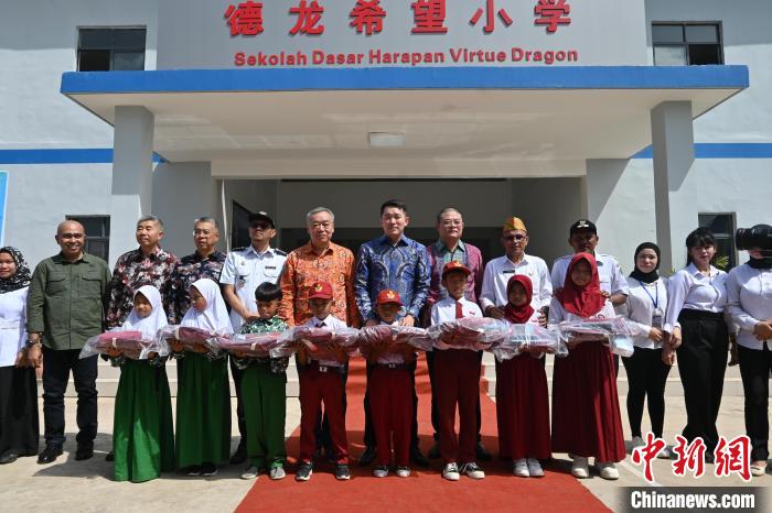 中新網(wǎng)雅加達(dá)1月3日電 (記者 李志全)1月3日,德龍希望小學(xué)剪彩儀式在印尼東南蘇拉威西省肯達(dá)里市莫洛西鎮(zhèn)隆重舉行,裝修完備的德龍希望小學(xué)將移交至當(dāng)?shù)亟逃块T,正式投入教學(xué)使用。
