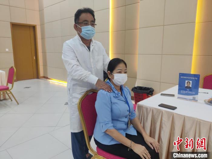 1月5日,中柬中醫(yī)藥中心、援柬中國中醫(yī)醫(yī)療隊赴柬埔寨國家銀行開展義診服務。援柬中國中醫(yī)醫(yī)療隊供圖