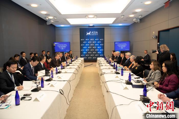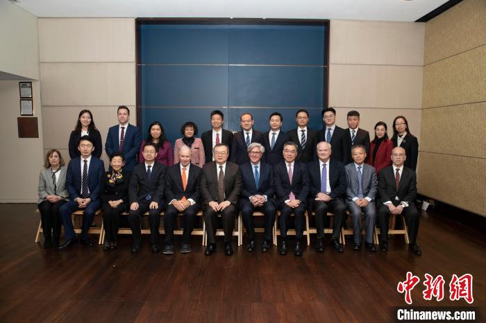當?shù)貢r間1月8日,中共中央對外聯(lián)絡部部長劉建超在紐約出席中美1.5軌對話框架下專題座談。圖為座談后合影?!≈行律缬浾?廖攀 攝