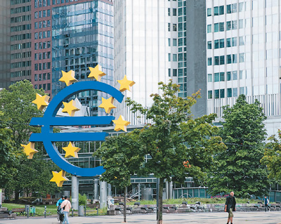 歐元由歐洲中央銀行(歐央行)和各歐元區(qū)國家的中央銀行組成的歐洲中央銀行系統(tǒng)負責管理??偛孔溆诘聡ㄌm克福的歐央行有獨立制定貨幣政策的權(quán)力。自1999年至2008年國際金融危機爆發(fā)前,歐央行貨幣政策較好實現(xiàn)了價格穩(wěn)定目標,將歐元區(qū)實際通脹率穩(wěn)定在2%左右,有力促進了歐洲經(jīng)濟發(fā)展。