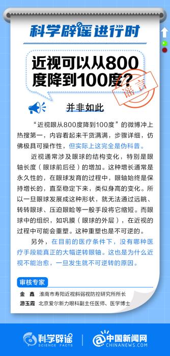 中新網(wǎng)1月11日電 話題“近視眼從800度降到100度的過程”登上熱搜榜,有博主表示通過“視覺恢復(fù)的閃現(xiàn)技巧”可逐漸恢復(fù)視力。對此專家表示,內(nèi)容看起來干貨滿滿,步驟詳細(xì),仿佛極具可操作性,但實際上這完全是偽科普。