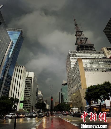 當(dāng)?shù)貢r間1月10日,巴西圣保羅保利斯塔大街,暴雨將至。中新社記者 林春茵 攝