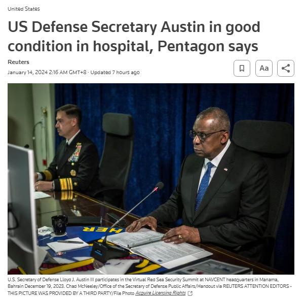 此前報(bào)道,在美國(guó)防長(zhǎng)奧斯汀隱瞞住院并無(wú)法履職事件曝光5天后,五角大樓1月9日對(duì)外披露,奧斯汀2023年12月被診斷出患有前列腺癌,在接受手術(shù)后出現(xiàn)并發(fā)癥,導(dǎo)致住院治療。