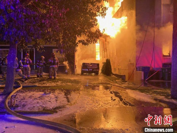 當(dāng)?shù)貢r(shí)間1月14日,消防員試圖撲滅發(fā)生在美國(guó)俄勒岡州波特蘭東北部一座教堂的大火。(波特蘭消防救援部門(mén)供圖)