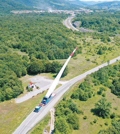 下山途中經(jīng)過一處人家時,一名村民站在門口揮手致意,李守志搖下車窗用當(dāng)?shù)卣Z言跟他打招呼。李守志告訴記者:“山里的居民都認得風(fēng)電項目的汽車,每回路過,他們都會熱情地向我們招手,有時還會請我們?nèi)ゼ依镒隹?,嘗嘗他們釀的果子酒。為了更好地跟村民交流,我還學(xué)了點克羅地亞語?!?/p>