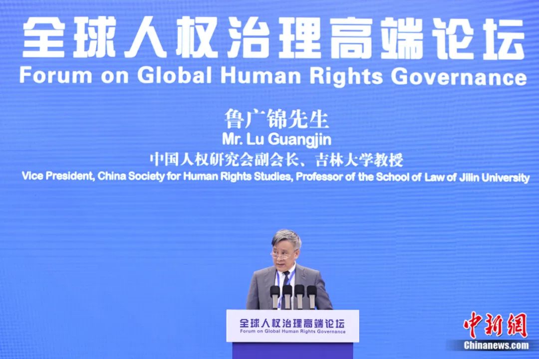 2023年6月15日,全球人權(quán)治理高端論壇在北京舉行。中國(guó)人權(quán)研究會(huì)副會(huì)長(zhǎng)、吉林大學(xué)教授魯廣錦進(jìn)行大會(huì)發(fā)言。蔣啟明 攝
