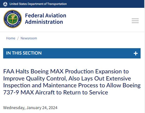 美國聯(lián)邦航空管理局局長邁克·惠特克表示,在檢查和維護(hù)過程中發(fā)現(xiàn)的飛機(jī)質(zhì)量控制問題得到解決之前,該機(jī)構(gòu)不會(huì)同意波音公司提出的任何擴(kuò)大生產(chǎn)或增加737 MAX生產(chǎn)線的要求。
