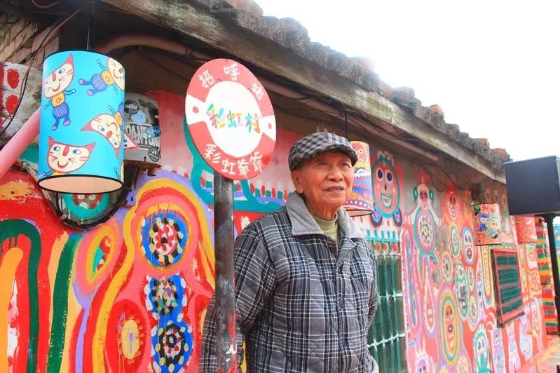 如今,彩虹眷村不僅是許多臺(tái)灣游客到訪臺(tái)中的必游景點(diǎn),更紅到了海外。國(guó)際知名旅游指南《孤獨(dú)星球》將其列為全球值得探訪的景點(diǎn)之一,每年吸引大量游客到訪打卡。走紅后的黃永阜依舊在村里作畫,碰上到訪游客,他愿意互動(dòng)合影,深受民眾歡迎。
