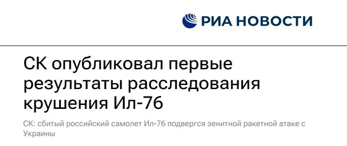 俄羅斯偵查委員會(huì)在聲明中表示,正在對(duì)機(jī)身碎片等物體進(jìn)行專業(yè)鑒定,同時(shí)詢問事件目擊者并繼續(xù)進(jìn)行現(xiàn)場調(diào)查。根據(jù)初步調(diào)查結(jié)果,可以確定伊爾-76運(yùn)輸機(jī)遭到了來自烏克蘭境內(nèi)的防空導(dǎo)彈襲擊。
