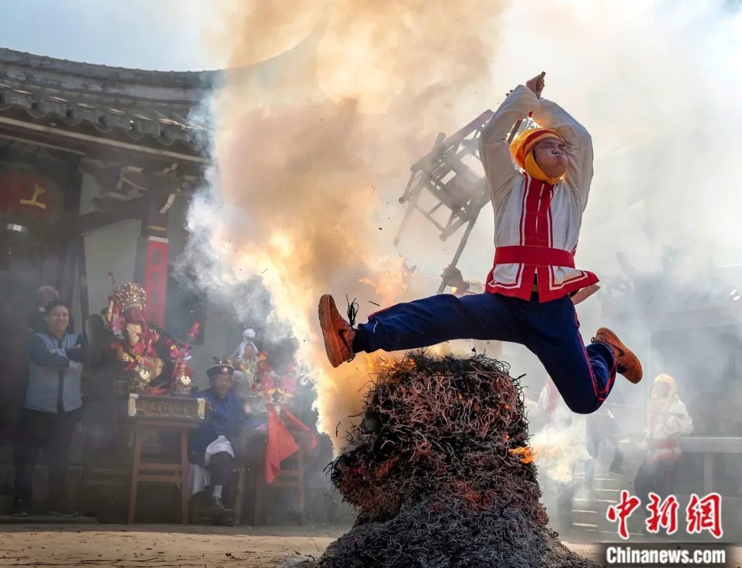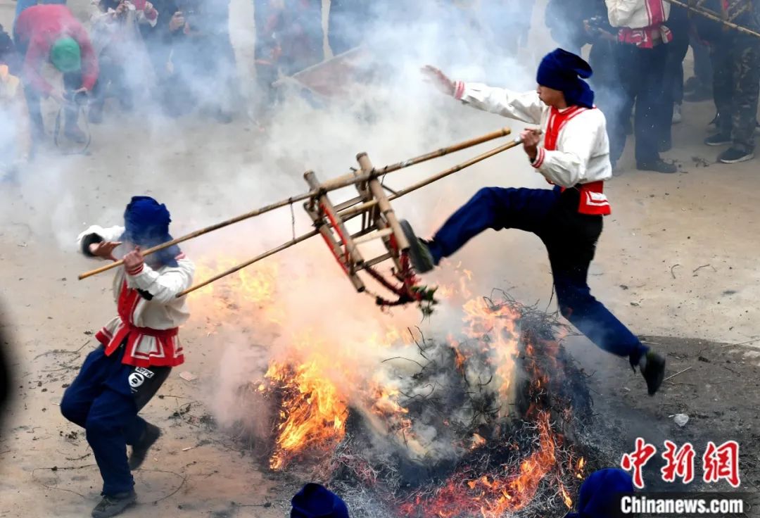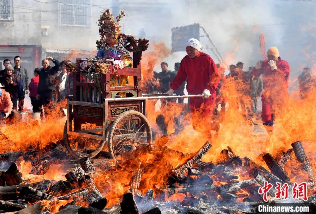 浮葉村舉行“抬轎沖?!逼砀x式。中新社記者 王東明 攝