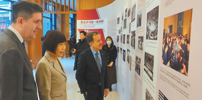 1月6日,弗吉尼亞大學(xué)代表團(tuán)在清華大學(xué)參觀中美“乒乓外交”圖片展。