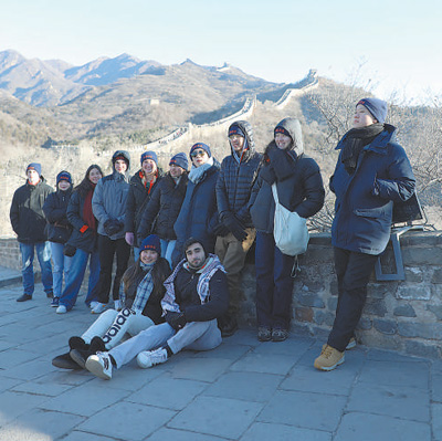 1月7日,弗吉尼亞大學(xué)代表團(tuán)成員在八達(dá)嶺長城合影留念。