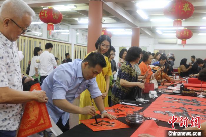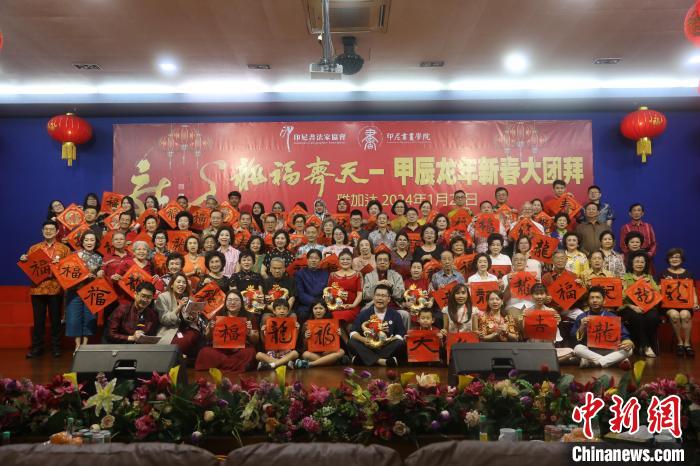 當(dāng)?shù)貢r(shí)間28日上午,這些書法愛好者齊聚印尼書畫學(xué)院,參加“‘龍’福齊天——甲辰龍年新春大團(tuán)拜”活動(dòng)。活動(dòng)由印尼書法家協(xié)會(huì)和印尼書畫學(xué)院聯(lián)合舉辦。