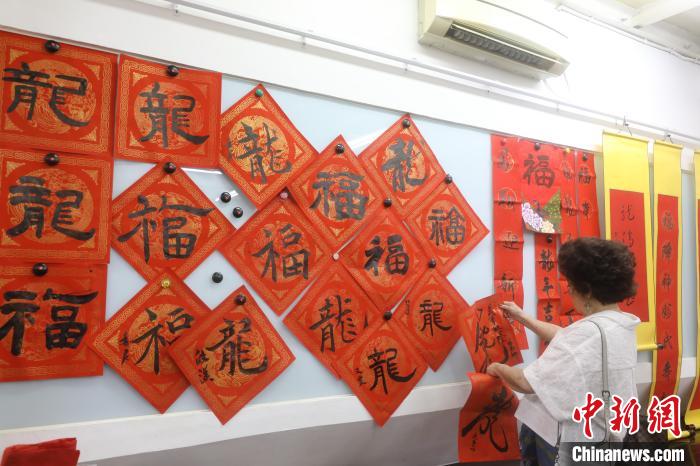 中新網(wǎng)雅加達(dá)1月29日電 (陳詩(shī)夢(mèng))“龍年大吉”“龍鳳呈祥”“龍馬精神”……走進(jìn)位于雅加達(dá)北部的印尼書畫學(xué)院,一幅幅獨(dú)具韻味的書法作品傳遞出一個(gè)個(gè)新年祝福。這些作品皆出自印尼各地的書法愛好者。
