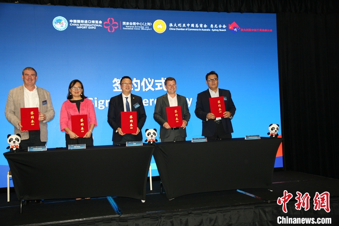 當(dāng)?shù)貢r(shí)間1月30日,第七屆中國(guó)國(guó)際進(jìn)口博覽會(huì)推介會(huì)在澳大利亞悉尼舉行。部分澳大利亞企業(yè)確認(rèn)參加第七屆進(jìn)博會(huì)并簽訂協(xié)議。 中新社記者 顧時(shí)宏 攝