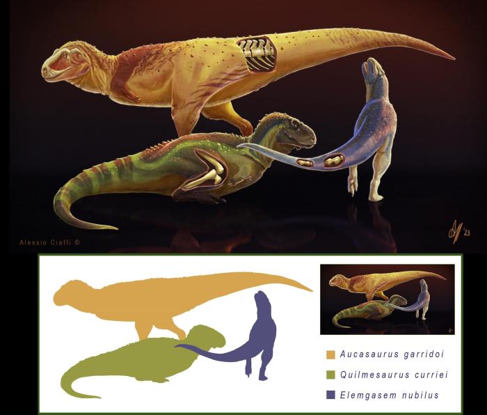 在本項(xiàng)研究中,論文第一作者兼通訊作者、香港中文大學(xué)和阿根廷國(guó)立內(nèi)格羅河大學(xué)Mattia A. Baiano與同事及合作者一起,利用計(jì)算機(jī)斷層掃描(CT)和骨骼組織學(xué)分析,研究了3組獸腳類恐龍的化石遺骸——分別來(lái)自加氏奧卡龍、迷霧嚙王龍和柯氏基爾梅龍,它們均生活在白堊紀(jì)晚期(距今約9000萬(wàn)至7000萬(wàn)年前)的南美洲。3個(gè)物種均為阿貝力龍科的獸腳類恐龍,這類恐龍的典型特征是前肢極短,頭骨深且有力并常生有冠、角等骨質(zhì)裝飾部位。
