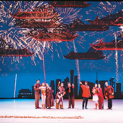 舞臺上,紅彤彤的燈籠、喜慶的春聯(lián)、熱鬧的廟會奏響了中國農(nóng)歷新年的序曲;“團團”和“圓圓”家的年夜飯彰顯了中國禮儀之邦的待客之道、尊老愛幼的傳統(tǒng)美德,一張全家福更傳達了中國人對親情的重視和對團圓的向往;“胡桃夾子”大戰(zhàn)“年”獸,則充滿童趣地演繹了“過年”的傳說;而當(dāng)寓意吉祥的仙鶴在蒼勁的松樹下迎著朝陽翩翩起舞,西方芭蕾藝術(shù)在中國文化意象中煥發(fā)出了美妙的東方神韻;扇子舞、絲綢舞、風(fēng)箏舞、陀螺舞……一個個頗具中國元素的慶典場面讓阿聯(lián)酋觀眾游歷在瑰麗多姿的中國傳統(tǒng)文化中。