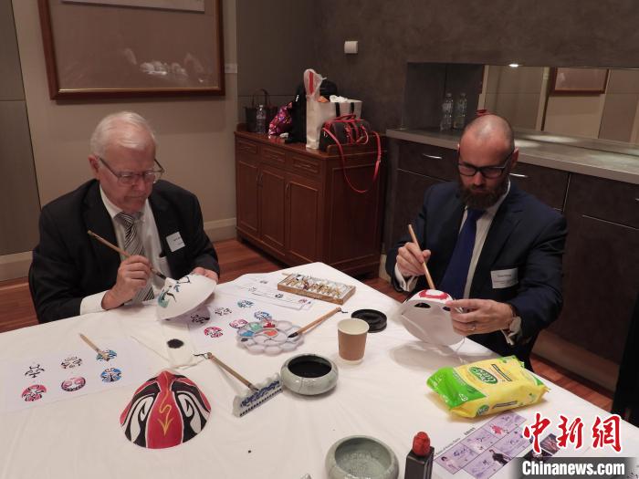 當(dāng)?shù)貢r(shí)間2月2日晚,中國(guó)駐悉尼總領(lǐng)事館在領(lǐng)館舉辦2024年春節(jié)招待會(huì)。當(dāng)晚的招待會(huì)現(xiàn)場(chǎng)上,來(lái)賓們互致新春祝福,并興致勃勃地體驗(yàn)描畫(huà)臉譜。記者 顧時(shí)宏 攝