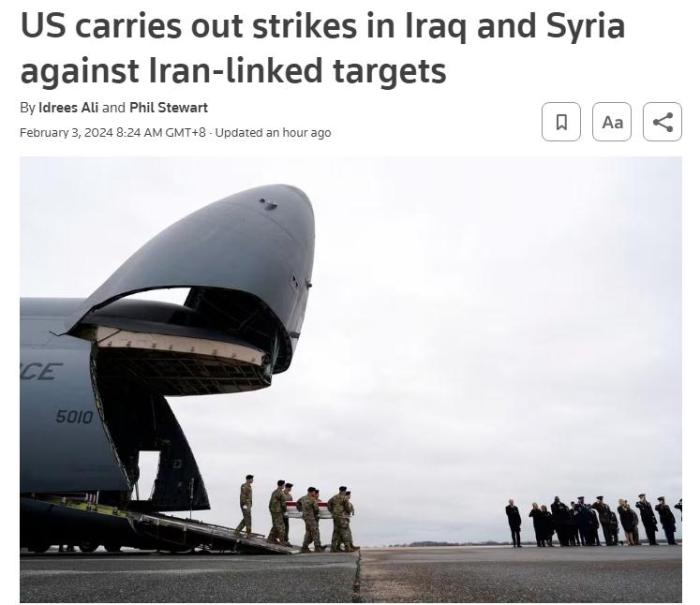 中新網(wǎng)2月3日電 綜合外媒報(bào)道,當(dāng)?shù)貢r(shí)間2日,美軍對(duì)敘利亞和伊拉克境內(nèi)受伊朗支持的武裝組織目標(biāo)進(jìn)行空襲。這是對(duì)3名駐約旦美軍士兵日前遭襲喪生的報(bào)復(fù)。