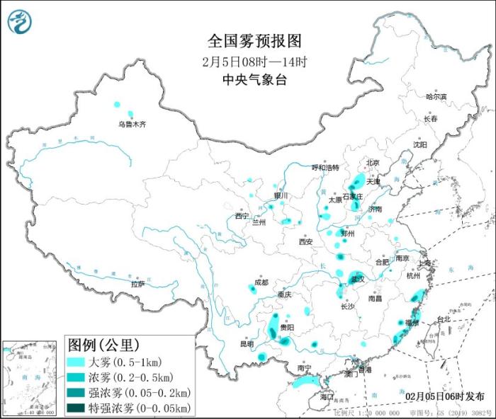 中央氣象臺(tái)2月5日06時(shí)繼續(xù)發(fā)布大霧黃色預(yù)警:預(yù)計(jì),5日早晨至上午,雷州半島沿岸海域、粵西沿岸海域、北部灣偏北海域、福建沿岸的部分海域?qū)⒂写箪F,能見(jiàn)度不足1公里。此外,河北西部、山西西南部、河南南部、湖北中東部、浙江東南部、福建東部、貴州西部等地有大霧天氣,局地有能見(jiàn)度不足200米的強(qiáng)濃霧。