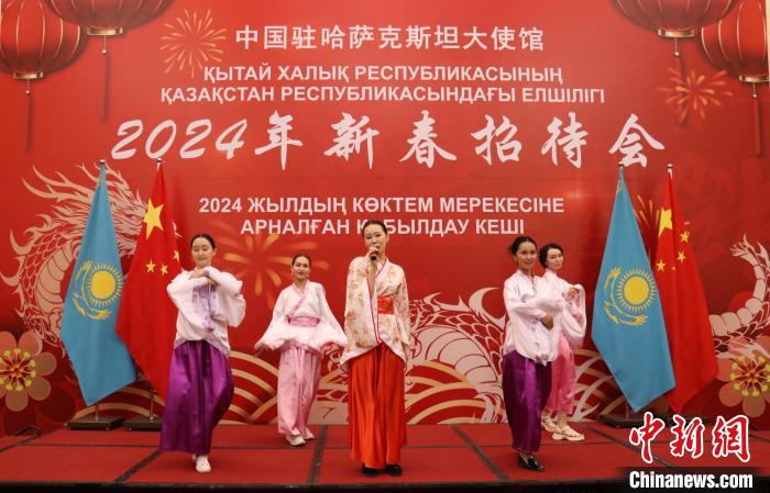 當(dāng)?shù)貢r(shí)間2月7日晚,中國(guó)駐哈薩克斯坦大使館舉行2024年新春招待會(huì)?!≈行律缬浾?張碩 攝