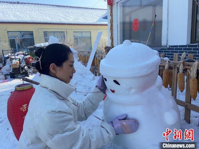 楊家佳在民宿外堆雪人?!罴壹?供圖