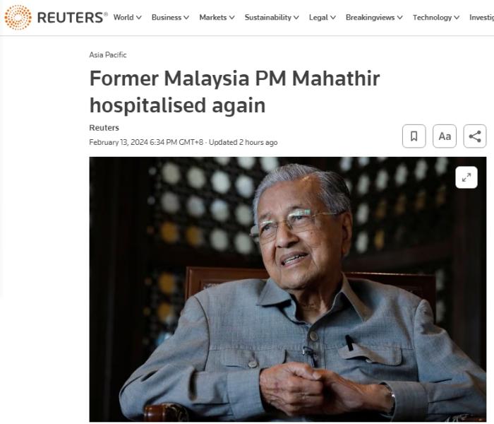 報道稱,馬哈蒂爾近年來多次因心臟和肺部問題進出國家心臟中心,僅在2022年就入院三次。