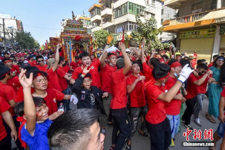 村民抬著村中供奉的神像走在巡游隊伍中。駱云飛 攝