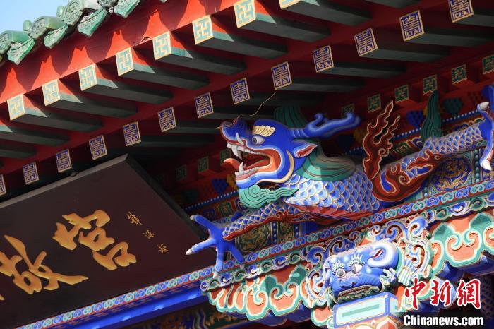 “沈陽故宮各類古建筑上的龍,從材質(zhì)上來說,有琉璃、木雕、石雕等,其中大政殿木雕的‘金龍盤柱’比較有代表性?!鄙蜿柟蕦m博物院研究室副主任張國斌向記者介紹說,作為沈陽故宮中營造時間最早的建筑之一,大政殿是舉行新君即位、頒詔、元旦慶典、迎接大軍凱旋、舉行國宴等重大活動的地方,其造型和裝飾吸收借鑒了漢、滿、蒙、藏等多民族文化元素。