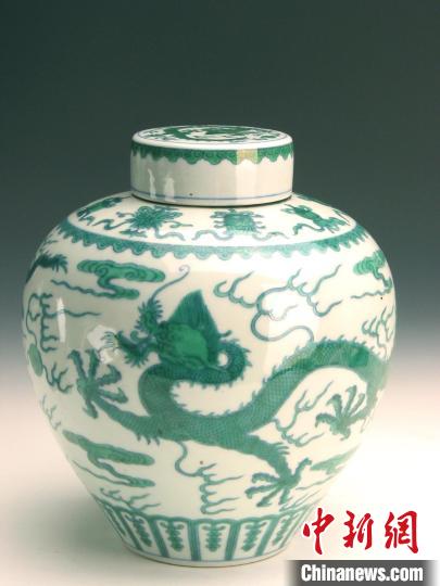 清乾隆款綠釉龍云紋蓋罐?!?沈陽故宮博物院 供圖)