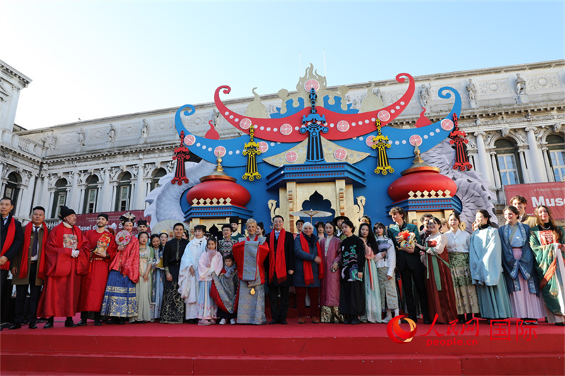 人民網(wǎng)威尼斯2月14日電 (記者謝亞宏)2月13日,為期兩周的年度威尼斯狂歡節(jié)迎來最后一天,期間舉行了威尼斯大學孔子學院與蘇州絲綢博物館合作主辦的漢服巡游活動。