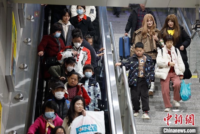 2月17日,旅客抵達上海虹橋站。 中新社記者 殷立勤 攝